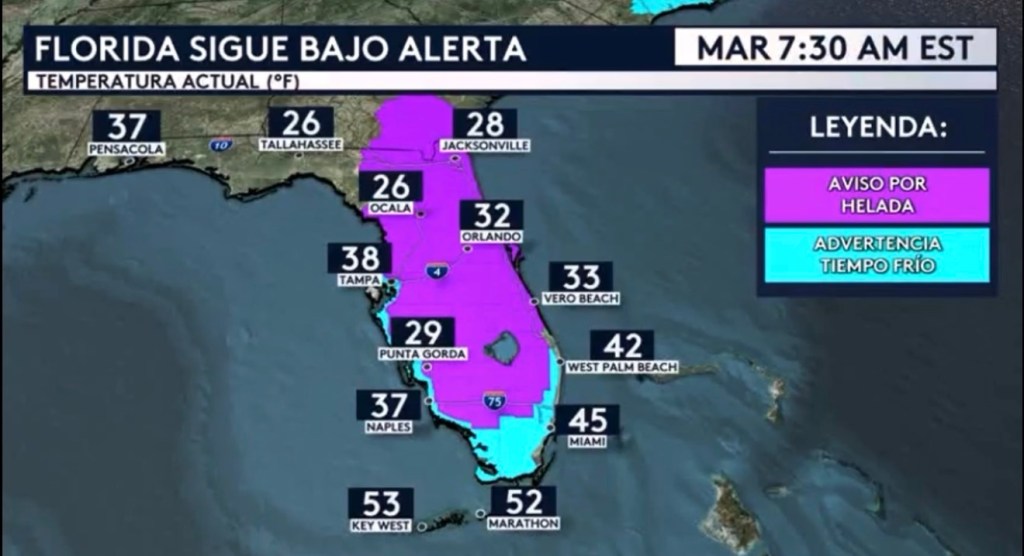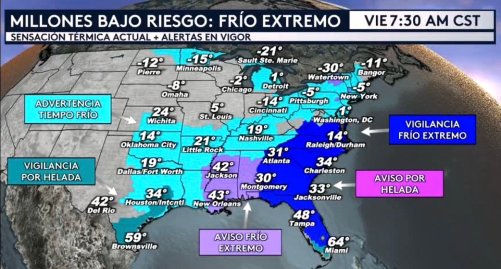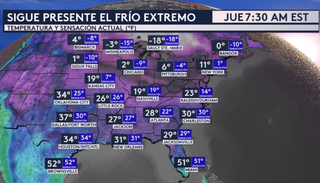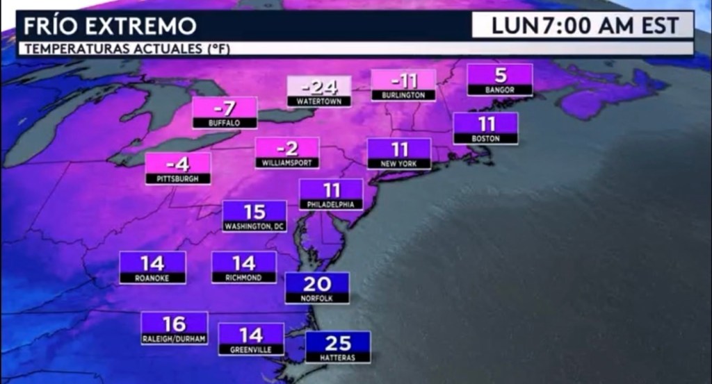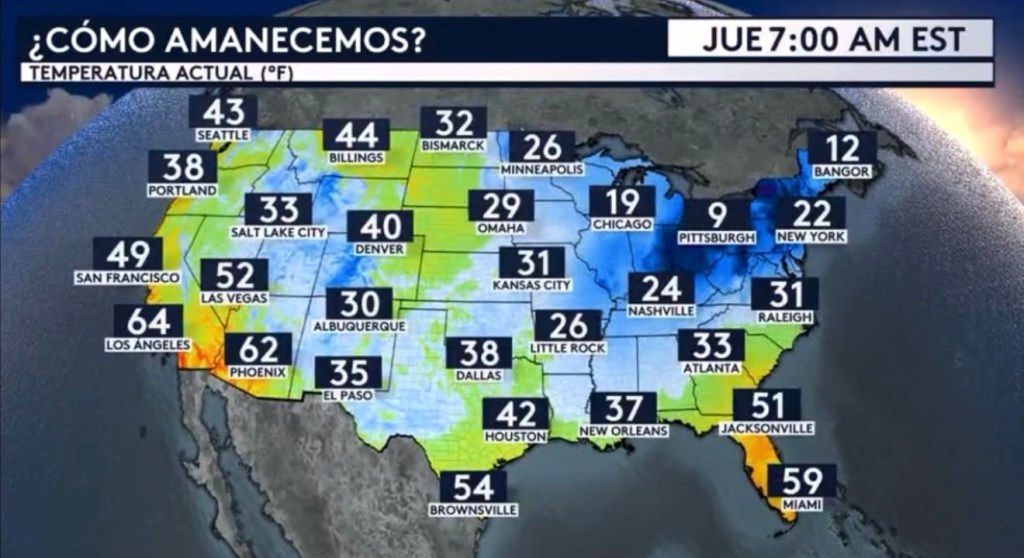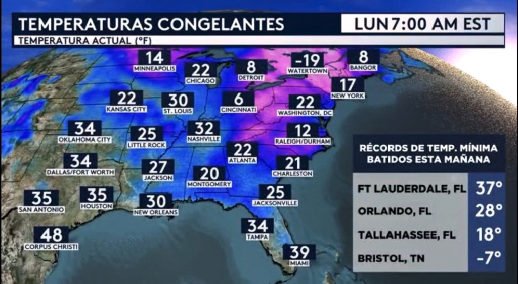 •La madrugada del lunes 2 de febrero será notablemente fría. Observen valores entre 5-8 °C a la 1:00am lo cual indica que el resto de la madrugada y sobre todo el amanecer puede ser uno de los más fríos de los últimos 15 años incluso no es de extrañar que se rompan algunos récords con mínimas que pueden estar por debajo de los 4 °C en el interior de occidente y centro. En el oriente también habrá mucho frío y las mínimas pueden estar en un solo dígito en algunas localidades o sea por debajo de los 10 °C. Cabe señalar que esto dependerá si los cielos están despejados y el viento en calma así tendremos los procesos de irradiación nocturna o sea la tierra se enfría rápidamente.