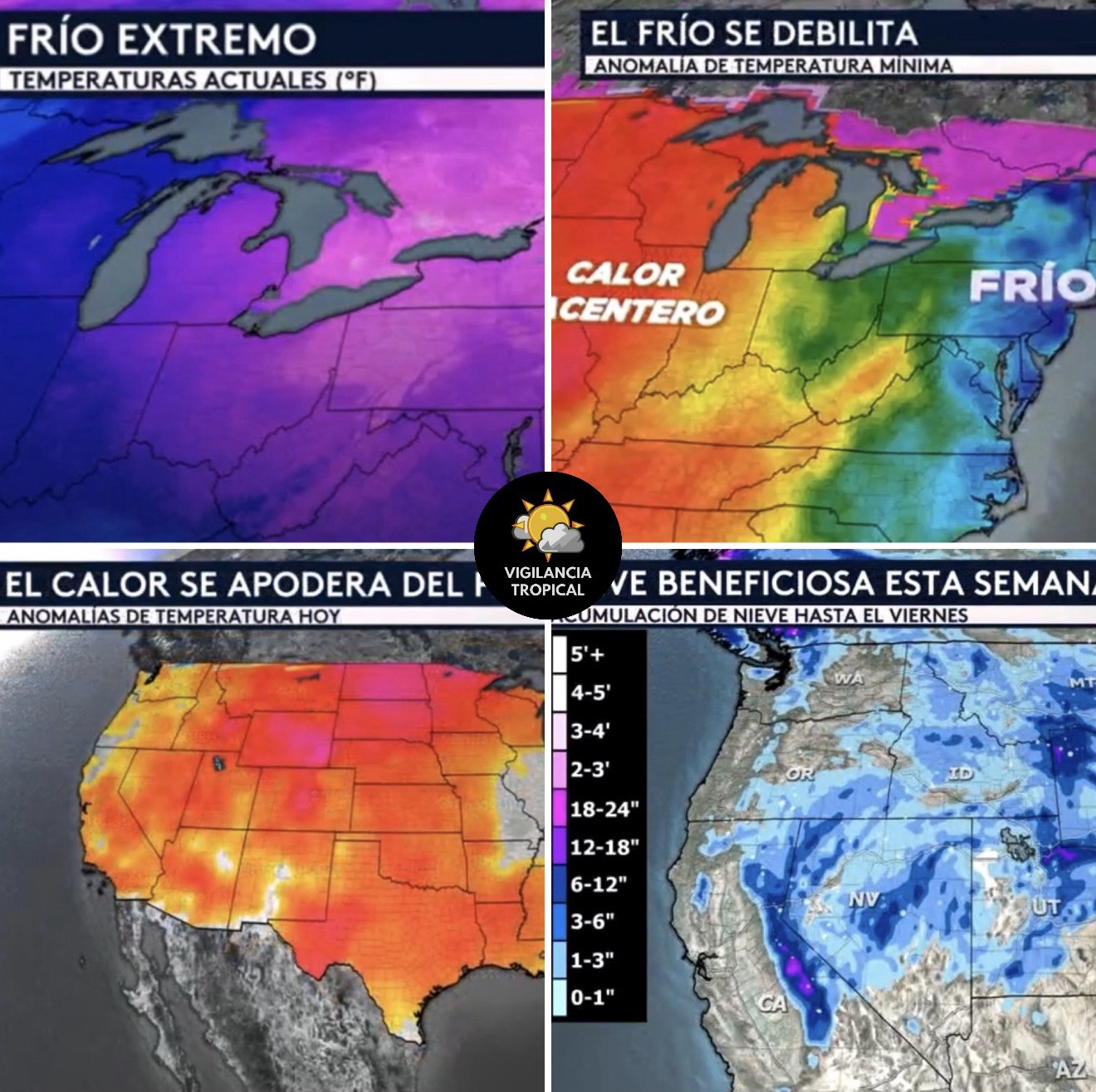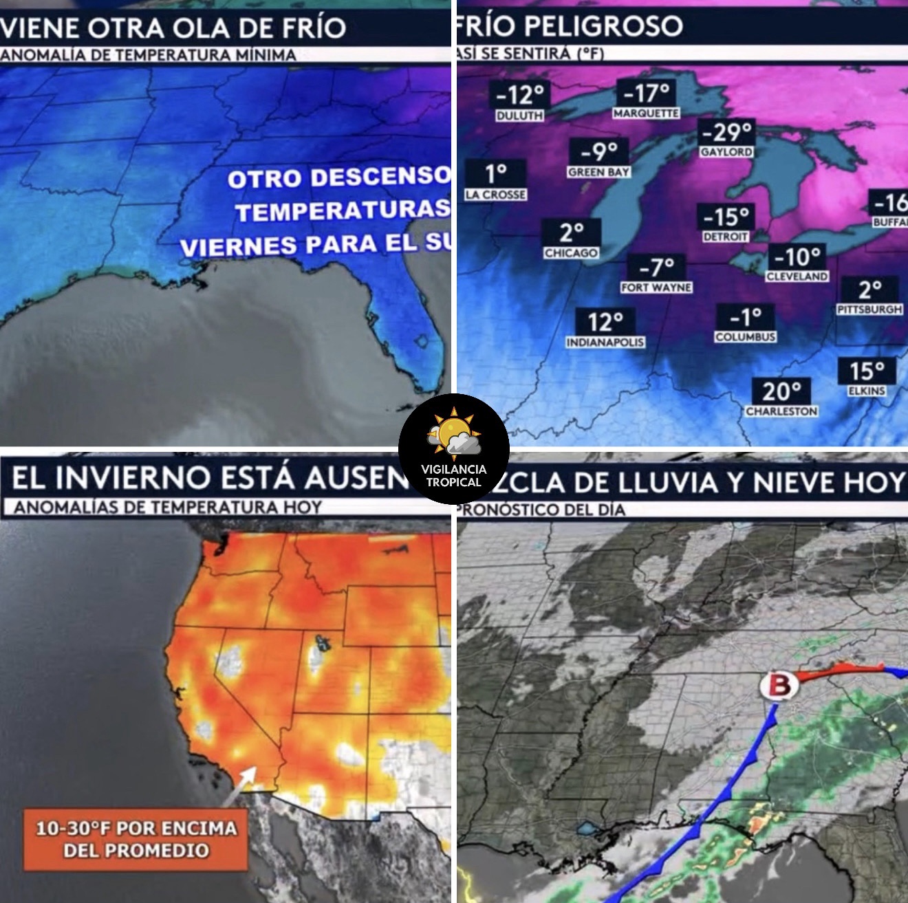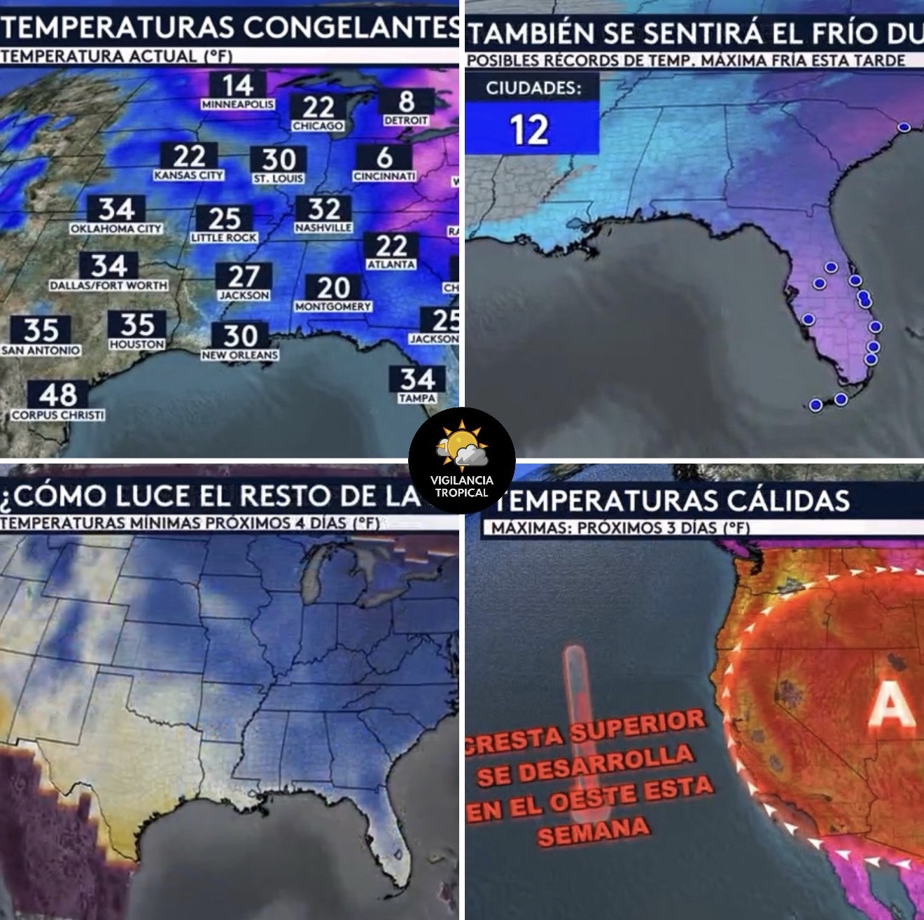 •Se establecerá la influencia de las altas presiones continentales migratorias con una masa de aire muy frío, seca y estable de origen ártico proveniente de Canadá trayendo consigo el descenso significativo de las temperaturas desde el domingo hasta el próximo miércoles en toda Cuba.