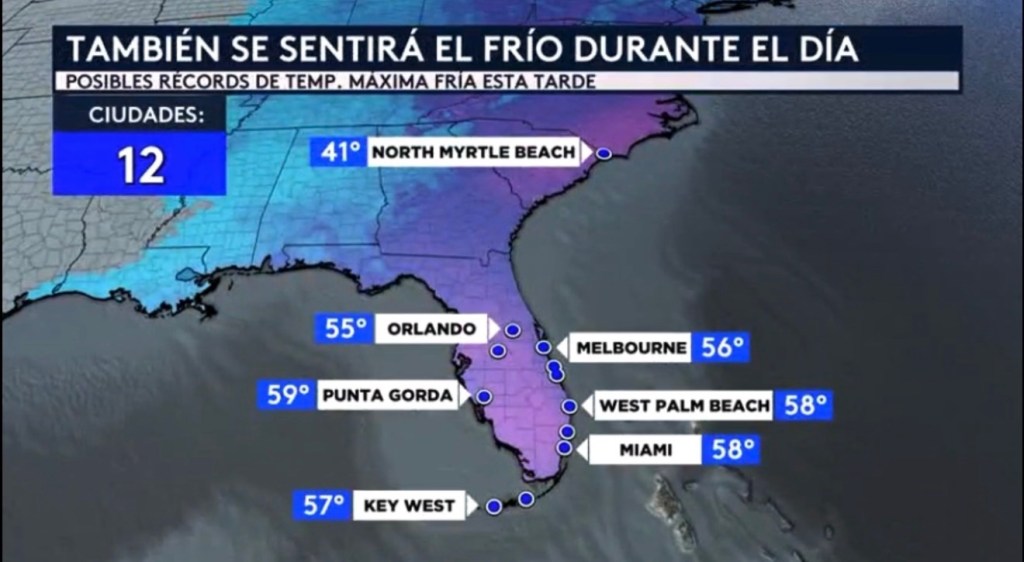 •Para la tarde del domingo 1 de febrero se pronostican temperaturas máximas entre 12-15 °C en la mitad occidental del país o sea desde Pinar del Río hasta Sancti Spíritus fundamental, incluso se observan temperaturas a la 1:00pm por debajo de los 12 °C en localidades de Cienfuegos, Villa Clara y Matanzas, producto al viento la sensación térmica será aún menor. En el resto del país se prevén máximas entre 17-20 °C, superiores en zonas costeras e inferiores en el interior.