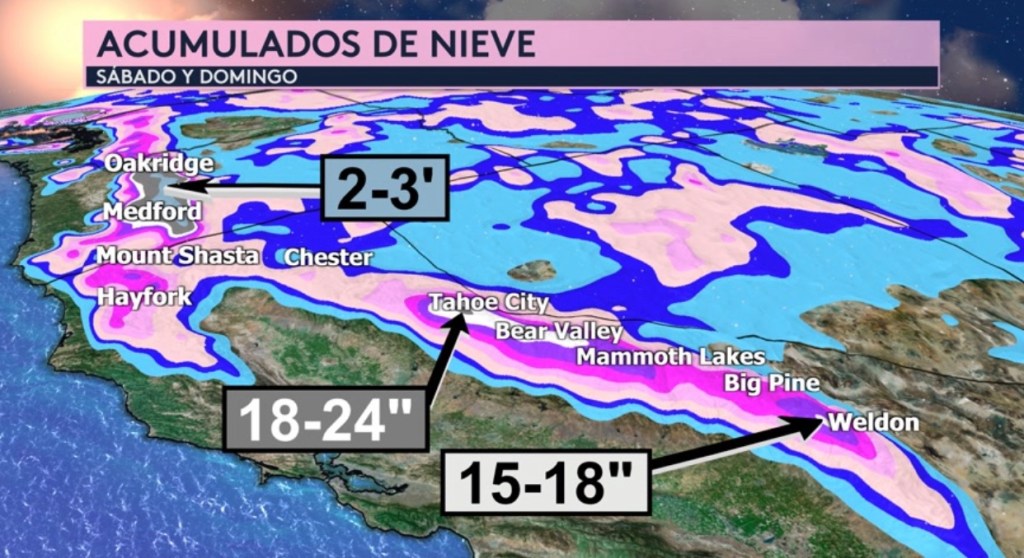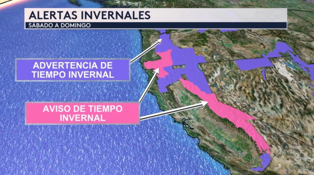 •Alertas invernales para las Montañas de Sierra Nevada y Cascades