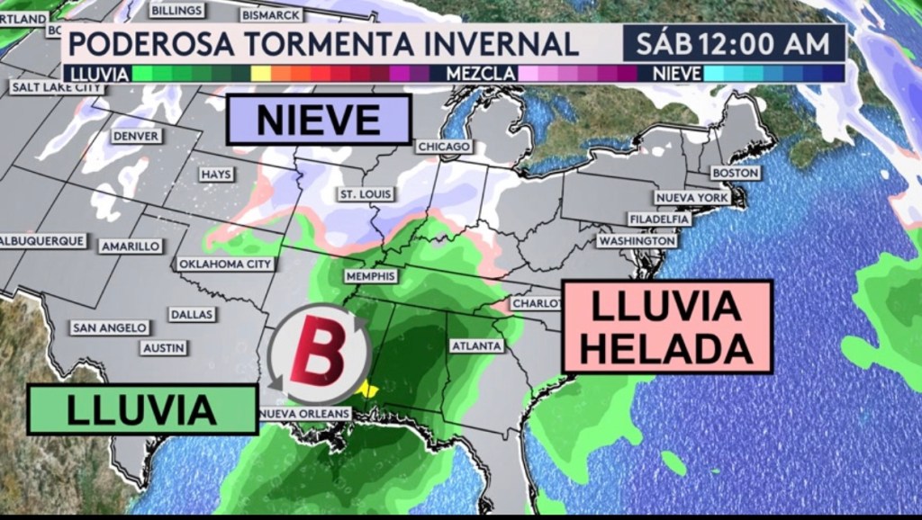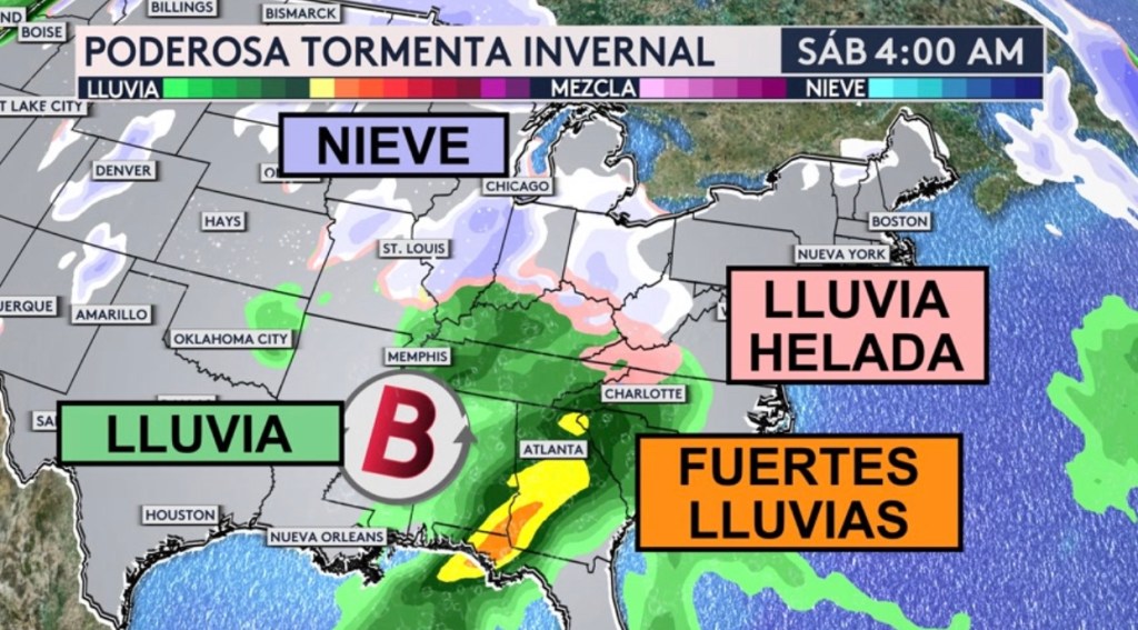 •Una poderosa tormenta invernal traerá fuertes lluvias y nevadas y lluvia helada este fin de semana