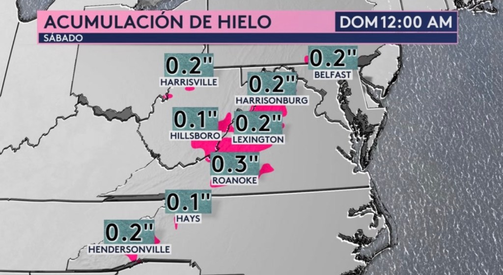 •Acumulación de hielo el sábado