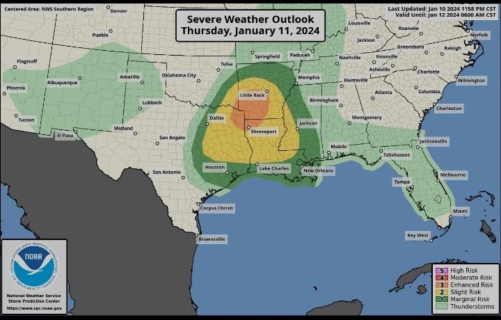 Ark-La-Tex esta tarde hasta la noche. También existe una grave amenaza y