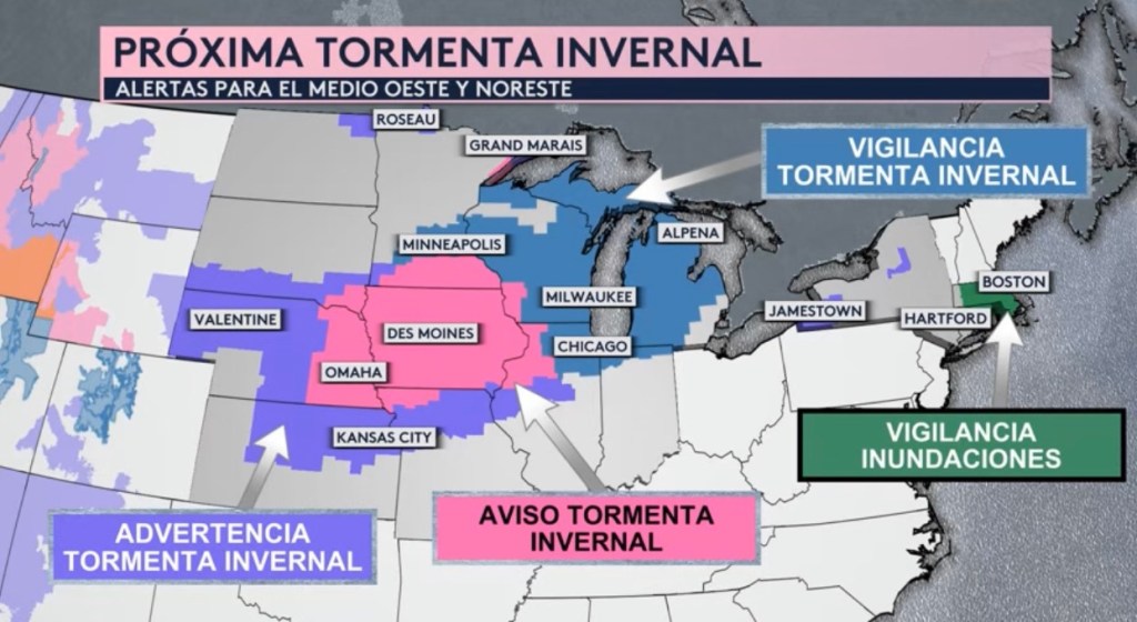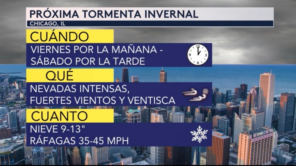 •Pronóstico para Chicago, donde se esperan fuertes nevadas y vientos. Lo peor sería el viernes por la noche