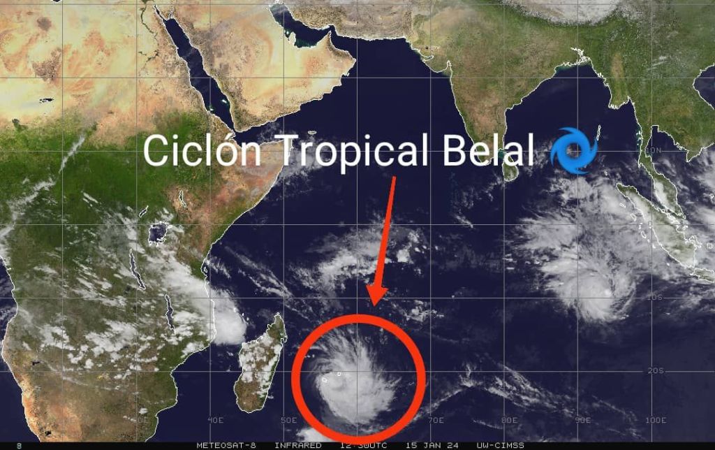•El Ciclón Tropical Belal se localiza en los 21.3 °Sur y 56.1 °Este posición que lo situa a 170 kilómetros al oeste de Morne moviéndose al sureste a 15 kilómetros por hora, tiene una presión mínima central de 975mb. Es un sistema con vientos máximos sostenidos de 135 kilómetros por hora (Categoría 1).
