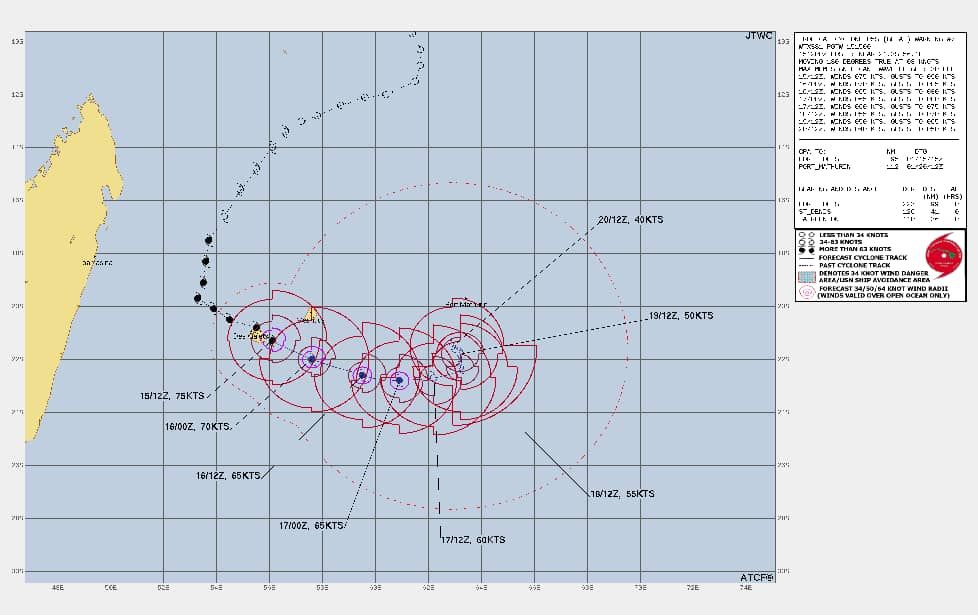 ✈️🌬️El aeropuerto Roland Garros en St. Denis, La Reunión, informó una velocidad de viento sostenida de 56 kt (64 mph = 104 km/h) y un viento ráfaga de 76 kt (87 mph = 141 km/h).