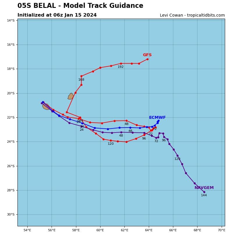 •El ciclón tropical Belal trajo fuertes vientos y lluvias localmente intensas a la isla de Reunión. La velocidad máxima sostenida del viento en Belal es ahora de 85 mph. (135 kilómetros por hora). Belal se mueve hacia el sureste a 9 mph. (15 kilómetros por hora). El índice de intensidad de huracanes (HII) de Belal es 12,7. El índice de tamaño de huracán (HSI) es 12,5 y el índice de tamaño de intensidad del viento de huracán (HWISI) es 25,2. El ciclón tropical Belal es similar en tamaño e intensidad al huracán Dolly cuando Dolly azotó el sur de Texas en 2008.