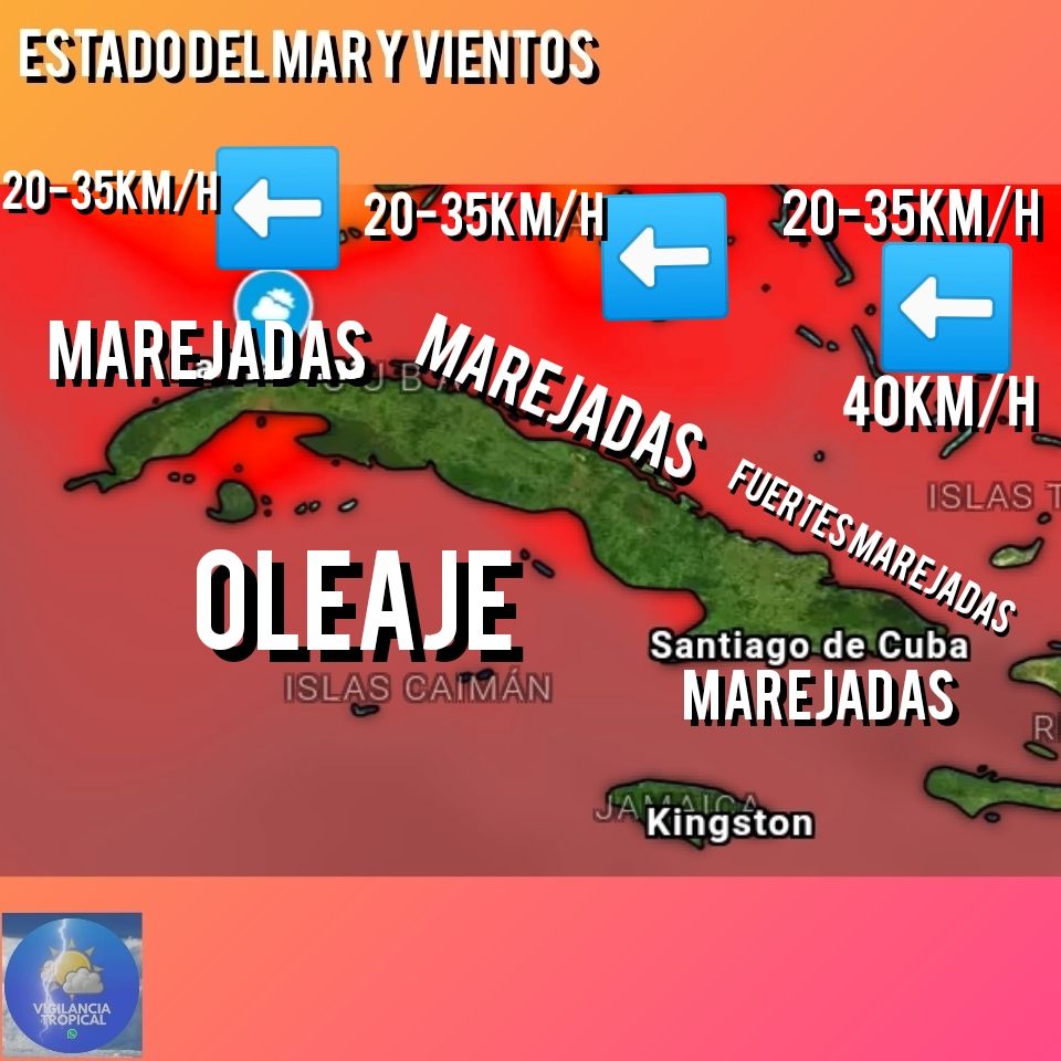 Habrá fuertes marejadas en el norte oriental, con inundaciones en zonas bajas del litoral de Baracoa. Se mantendrán las marejadas en el resto de los litorales, excepto en el sur de occidente y centro, donde habrá oleaje.