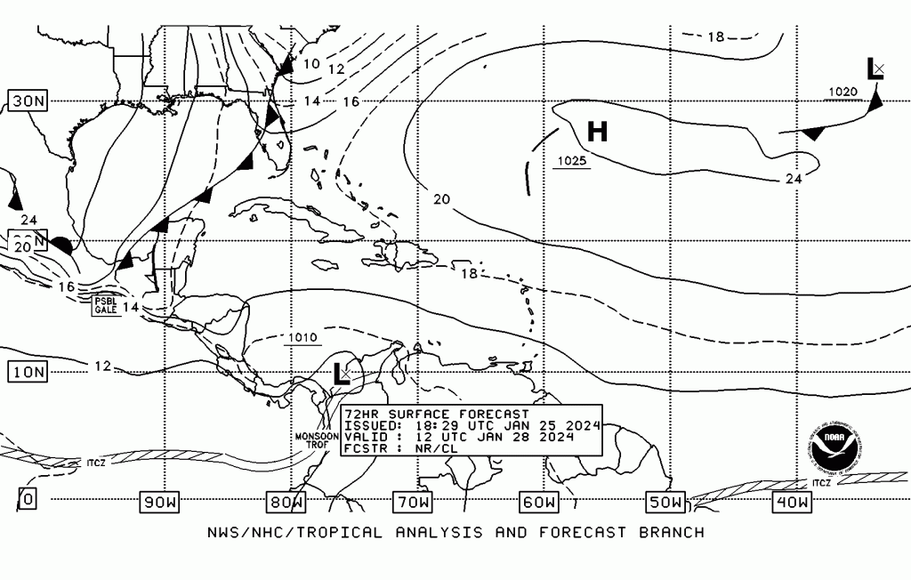 - Válido para el domingo 28 de enero 12 UTC (imagen NHC).