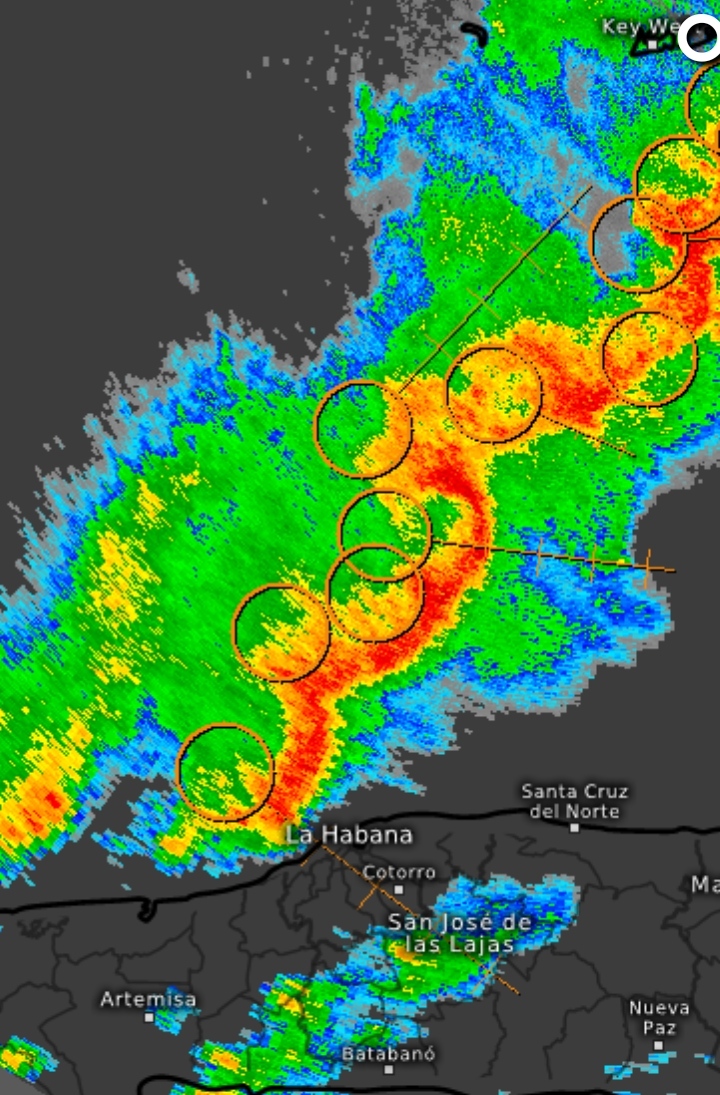 Por delante de dicho frente frío se gestó una línea de tormentas prefrontates como es habitual dada la dinámica de dichos fenómenos la cual se sencuentra transitando sobre en la porción Occidental de la Península de la Florida y partes del Estrecho (figura 2 y 3)