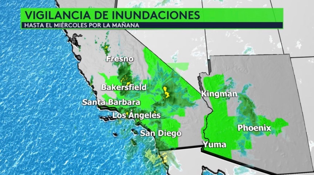 •Vigilancia de inundaciones para California y Nevada hasta esta noche y para Arizona hasta el miércoles por la mañana