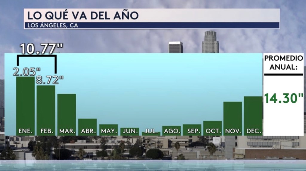 •En enero y los primeros 5 días de febrero, Los Ángeles ha recibido 10.77” de lluvia. Su promedio anual es 14.30”!