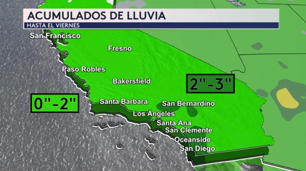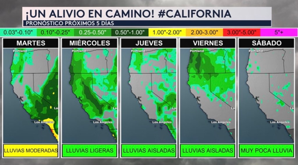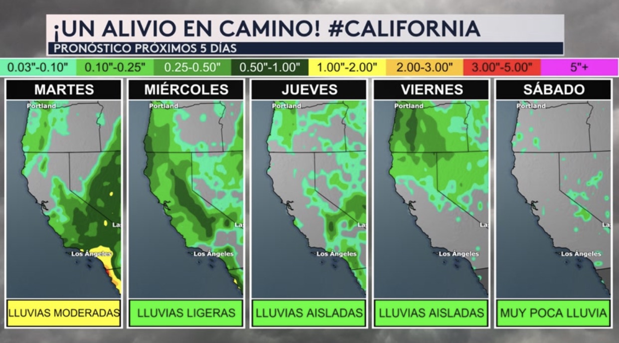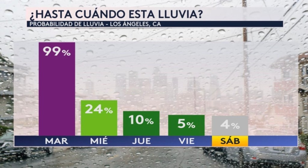 •Probabilidades de lluvia para Los Ángeles en los días siguientes. Hoy sería el último día con lluvias persistentes