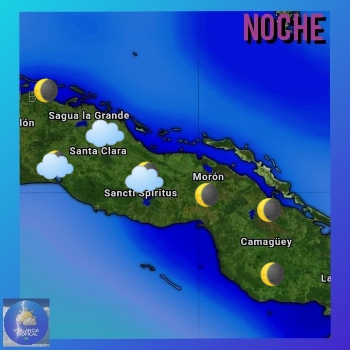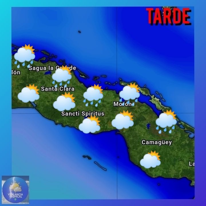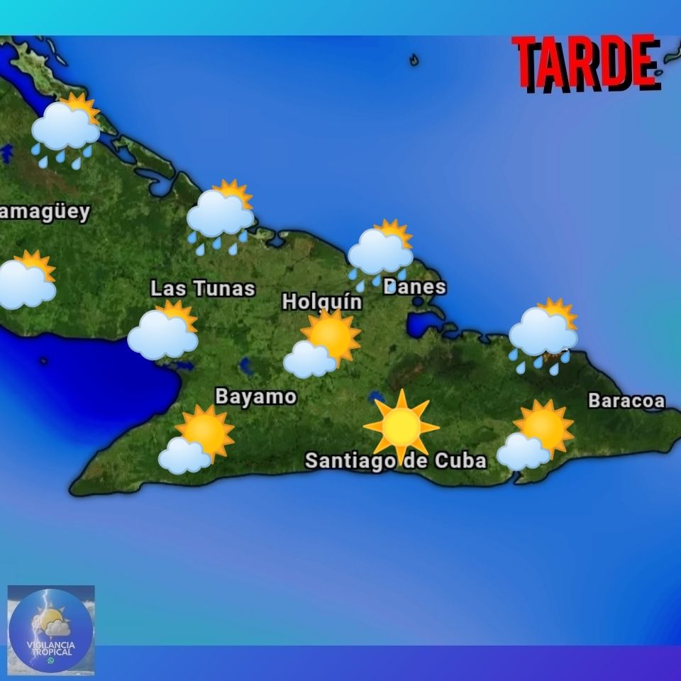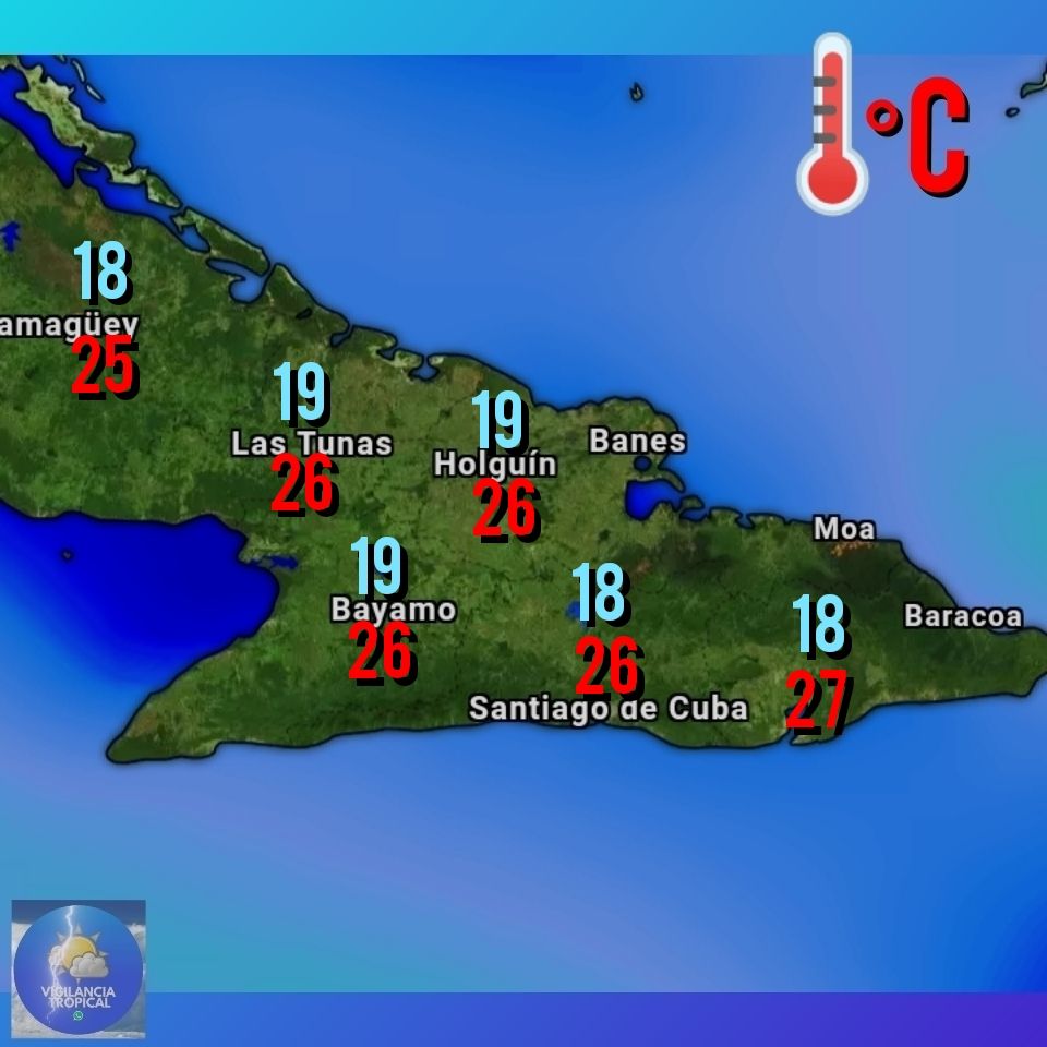 El cielo estará parcialmente nublado y nublado de manera ocasional en la tarde con la ocurrencia de aisladas lluvias en el litoral norte de desde Ciego de Ávila a Guantánamo.
