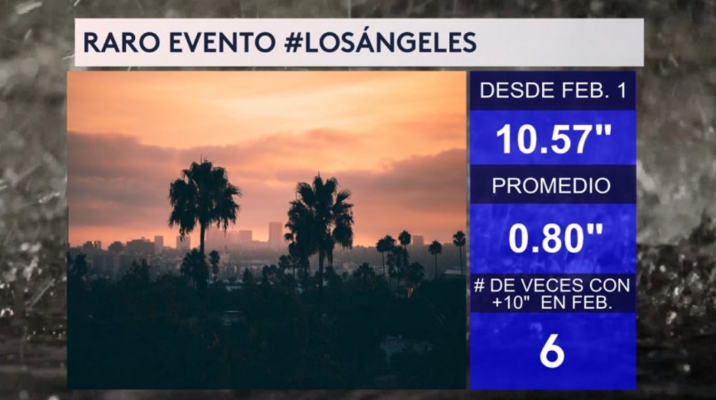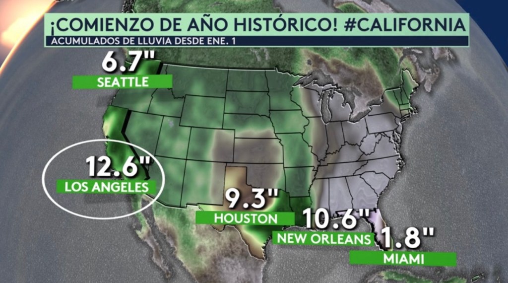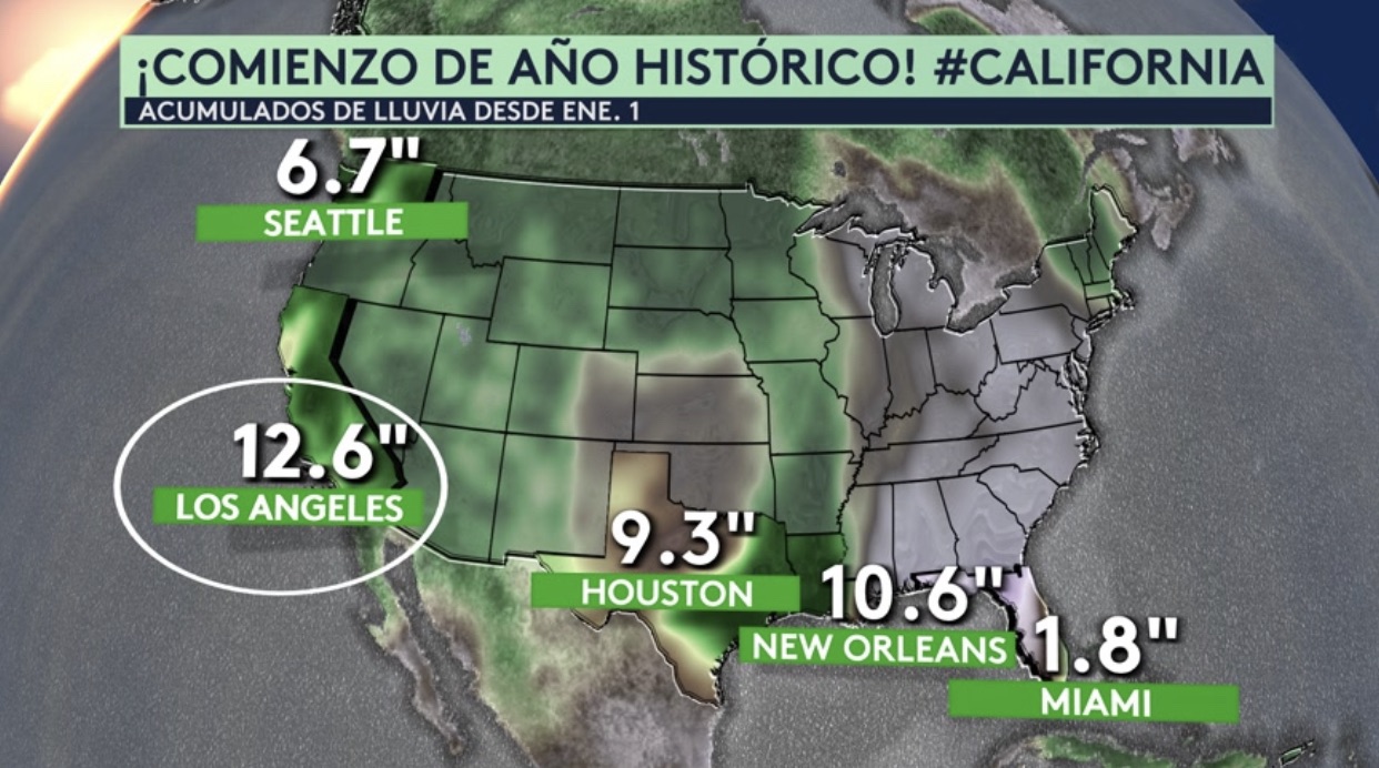 •Un comienzo de año histórico para Los Angeles. ¡La ciudad ha recibido 12.6” de lluvia desde el inicio del año, más que Miami, New Orleans, Houston y Seattle!