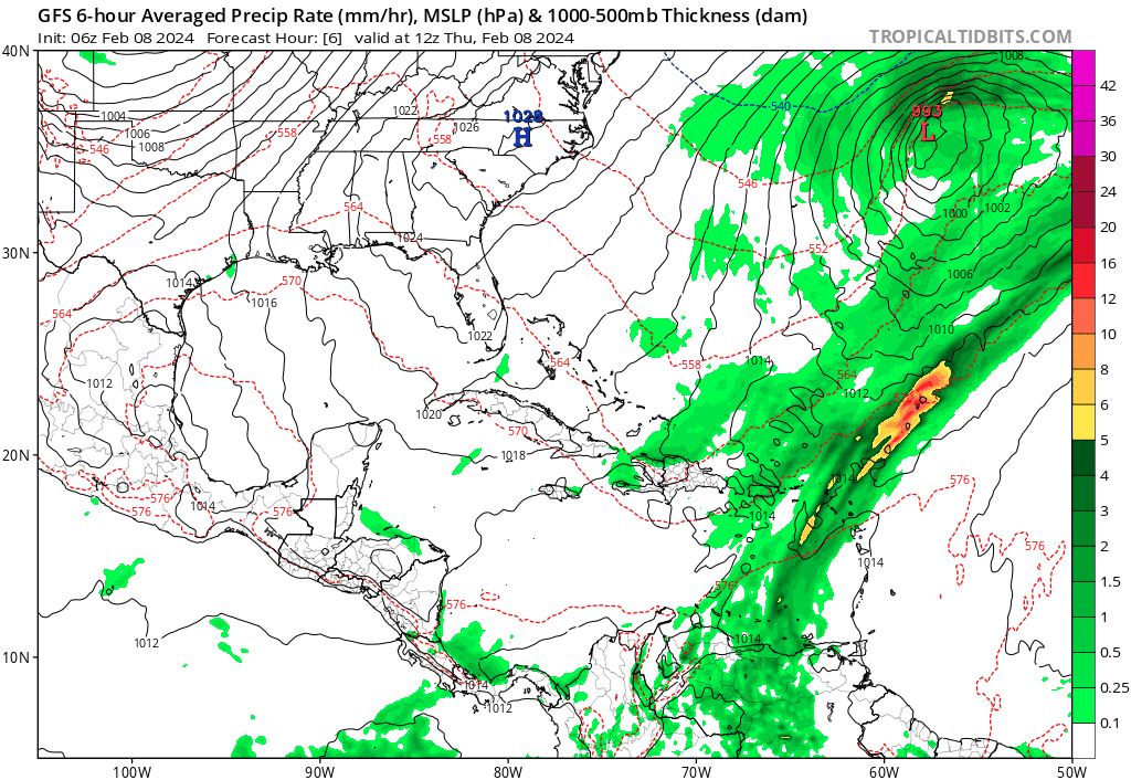Buenos días. Comenzamos como siempre revisando el más reciente análisis de superficie realizado por la NOAA , en el mismo podemos apreciar que Cuba y mares adyacentes permanecen bajo la influencia de las Altas presiones continentales migratorias con un centro en el sudeste de los Estados Unidos, imponiendo condiciones de buen tiempoy una masa de aire seca y fría dejando temperaturas invernales a lo largo de todo el archipiélago. (Fuente: https://www.nhc.noaa.gov/tafb_latest/USA_latest.gif)Cómo podemos apreciar también en esta animación del modelo de pronóstico GFS para las próximas 24 horas se extienden estas condiciones de buen tiempo para el resto del día, solo algún nublado y chubasco ocasional en el extremo más oriental del país, sobretodo en horas de la tarde y quizás principio de la noche, también puede ser el caso. Sería algo similar a como hemos amanecido hoy en La Capitalcon estos chubascos ocasionales que son provocados por el arribo de nublados bajos provenientes del mar por un flujo del Nordeste que impone la alta presión continental y provoca ese arrastre de nublados con chubascos ocasionales. (Fuente Tropical Tidbits)