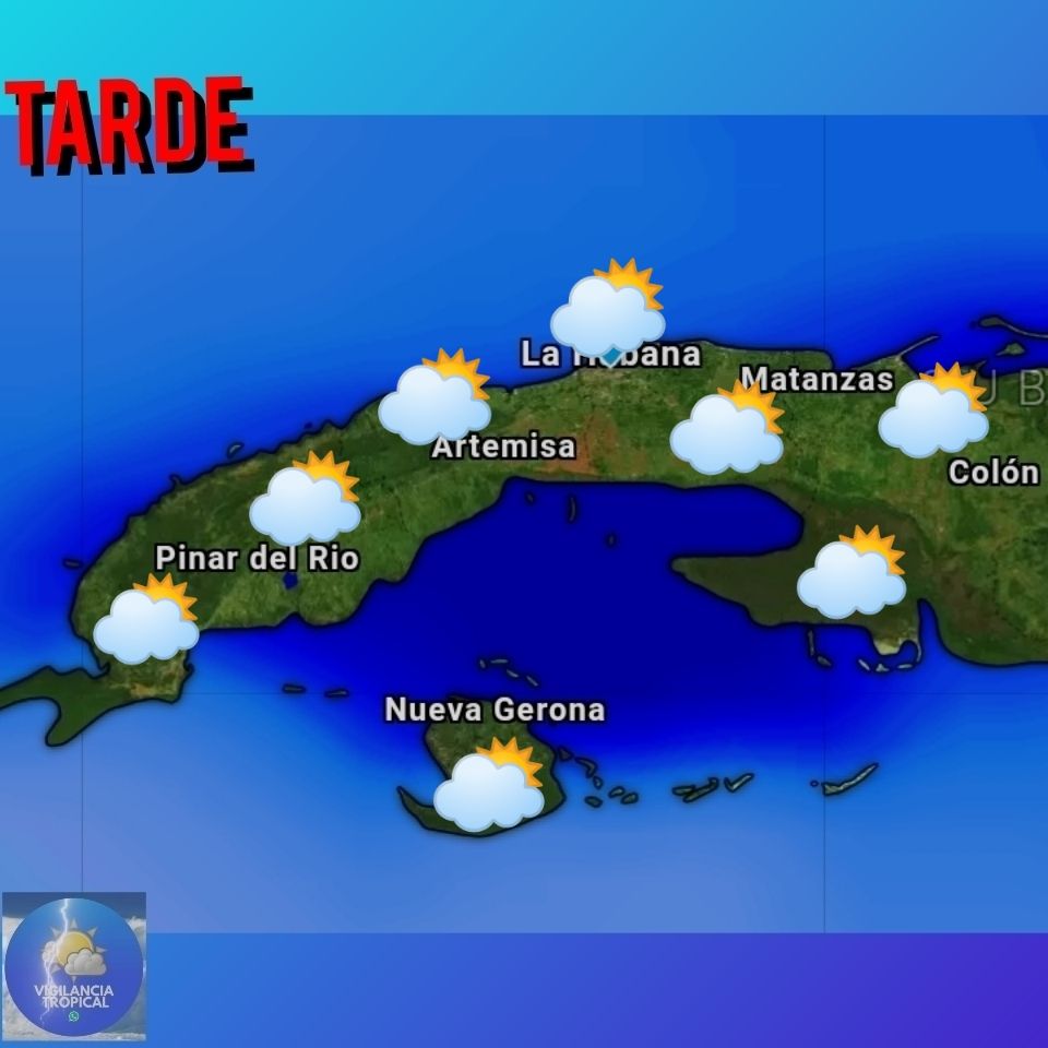En cuanto al pronóstico del tiempo emitido por el INSMET para el resto del día de hoy, tenemos que: