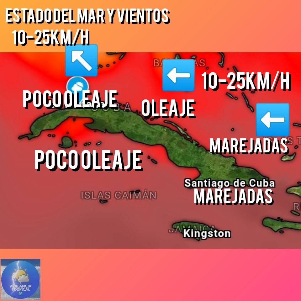 Habrá marejadas en la costa norte oriental y el sur del extremo oriental, oleaje en el resto de la costa sur oriental y la norte central. En el resto de los litorales habrá poco oleaje.