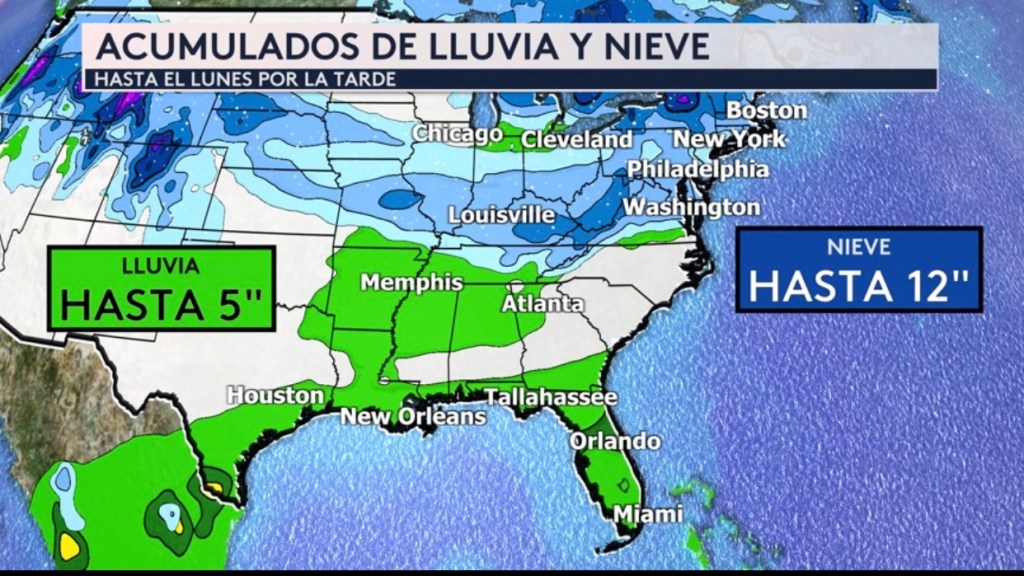 •Debe traer nieve para las Planicies y el Valle del Río Mississippi y lluvia para el sur. A partir del sábado por la mañana, más precipitación invernal para ciudades como Pittsburgh y New York y para Washington, DC.