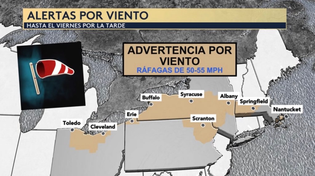 •Alertas por fuertes vientos para Ohio, New York, Pennsylvania y Massachussets