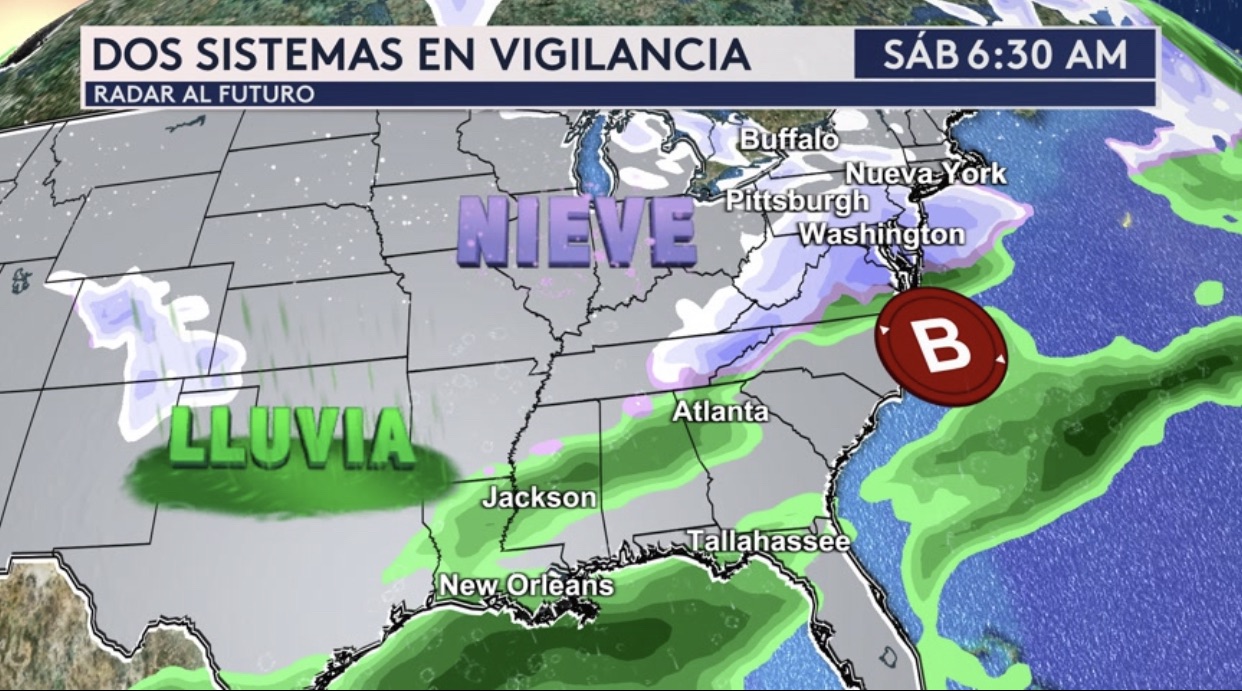 •Este mismo sistema de baja presión traerá nieve y lluvia para el noreste esta noche