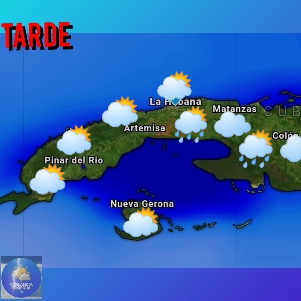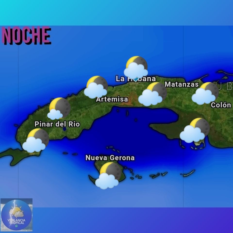 En cuanto al pronóstico del tiempo más detallado para el resto del día de hoy, emitido por el Instituto de meteorología de Cuba (INSMET), tenemos que: