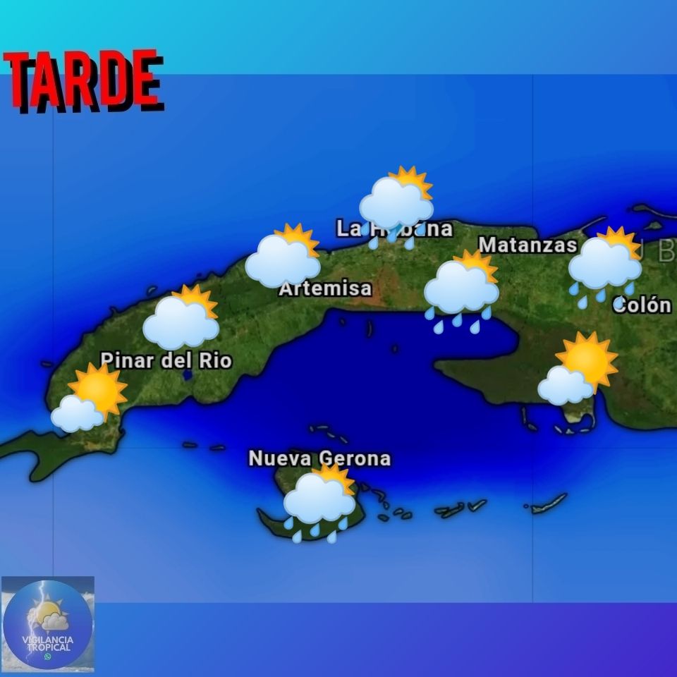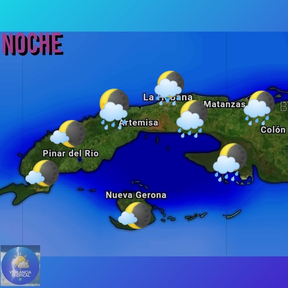 En cuanto al pronóstico del tiempo más detallado para el resto del día de hoy, emitido por el Instituto de meteorología de Cuba (INSMET), tenemos que: