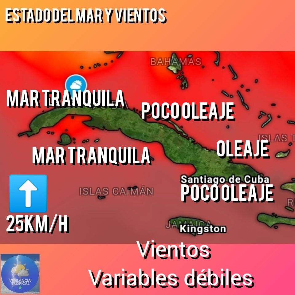 Habrá oleaje en la costa norte oriental que disminuirá a poco oleaje en la tarde. En la costa sur oriental y el norte central habrá poco oleaje, disminuyendo en esta última a mar tranquila gradualmente. En el resto de los litorales la mar estará tranquila.