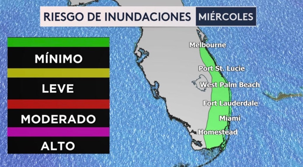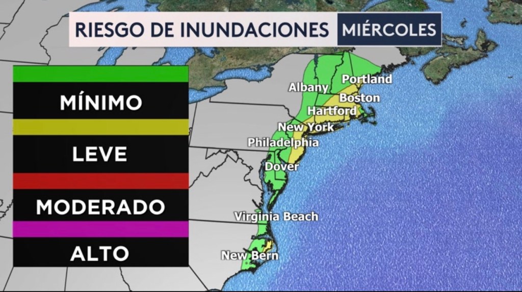 •Riesgo de inundaciones hoy para la costa este de Florida y para el medio Atlántico y noreste. Las ciudades bajo riesgo son Miami, Fort Lauderdale, Melbourne, Philadelphia, New York, Hartford y Boston