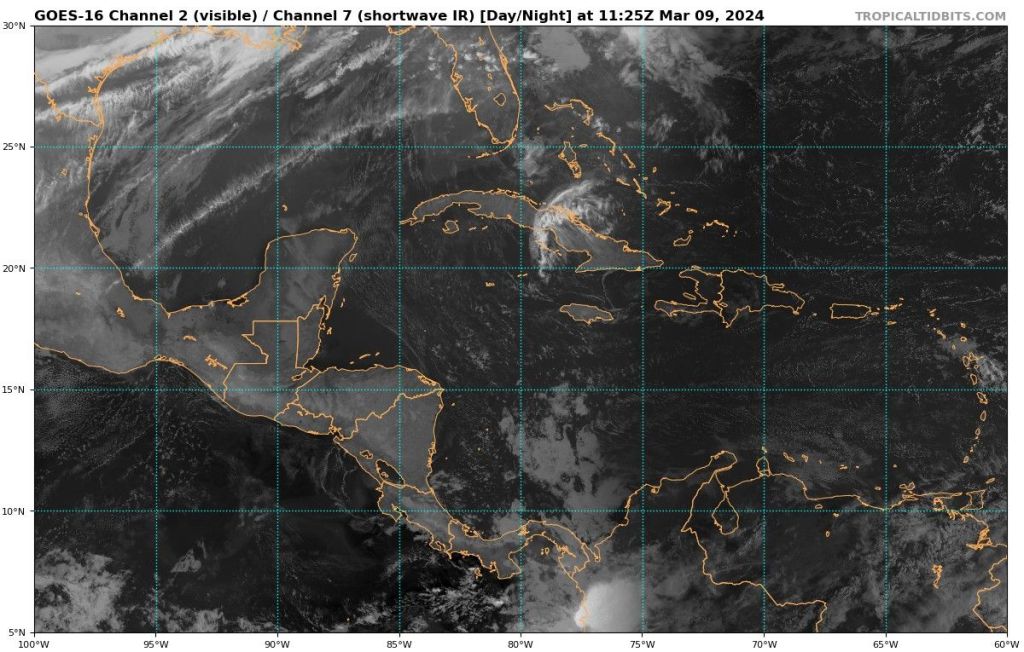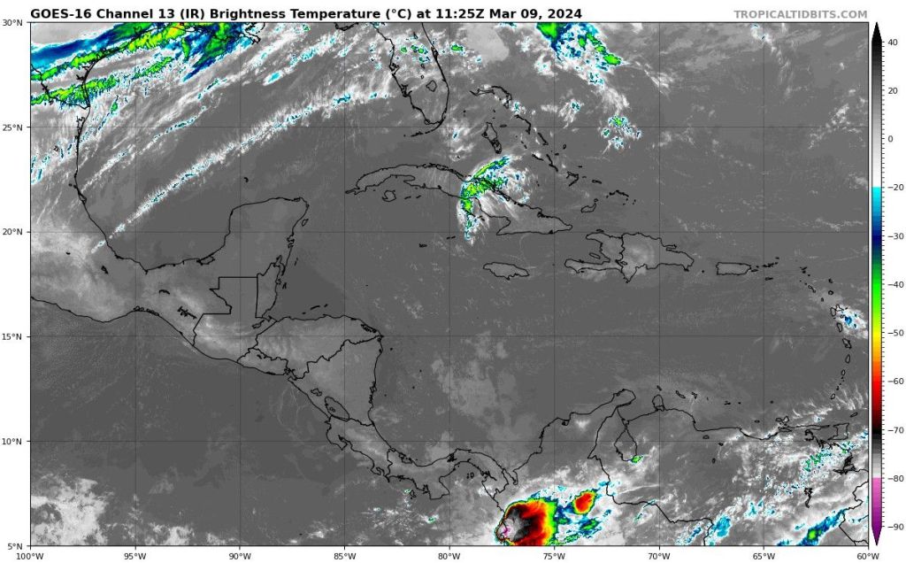 Pronóstico del tiempo en Cuba para el resto del día, y breve resumen de la aproximación de un nuevo sistema frontal a la región Occidental mañana domingo en horas de la tarde y noche. Marzo 9, 2024.