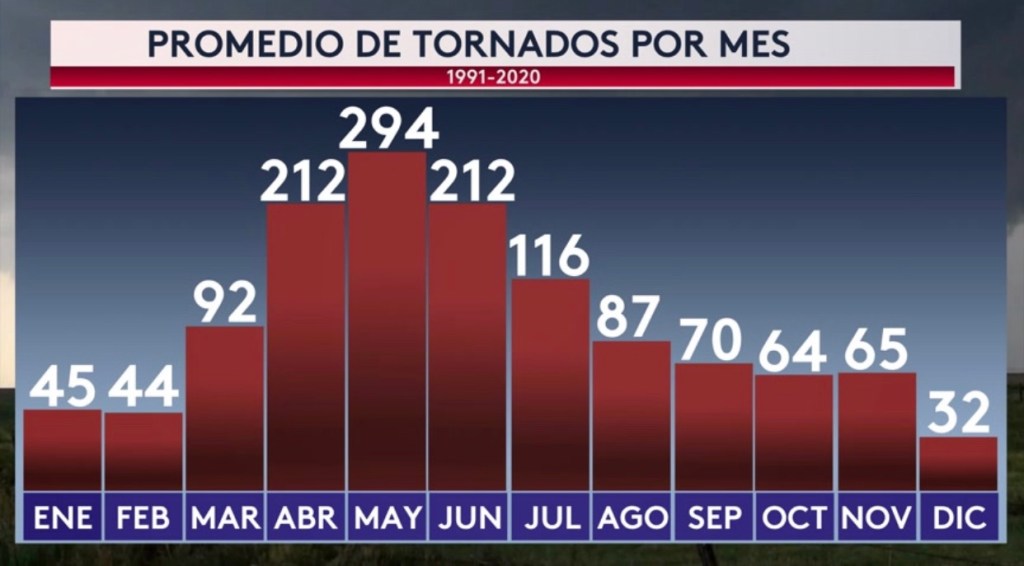 •Promedio de tornados por mes en EE. UU.