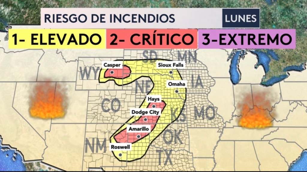•Riesgo de incendios desde el sur de las planicies hacia el norte