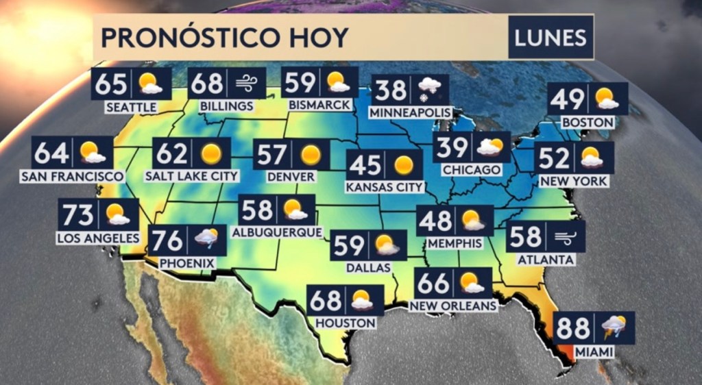 •Pronóstico nacional: lluvia para Florida y el suroeste del país