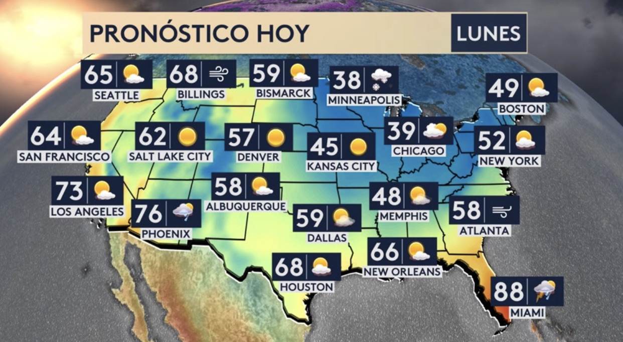 •Pronóstico nacional: lluvia para Florida y el suroeste del país