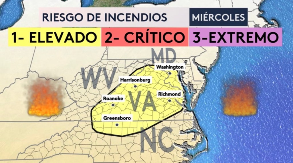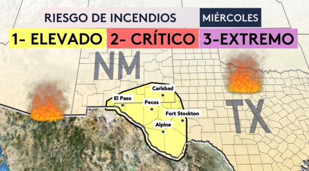 •Riesgo de incendios para Texas, Nuevo México y el Medio Atlántico hoy