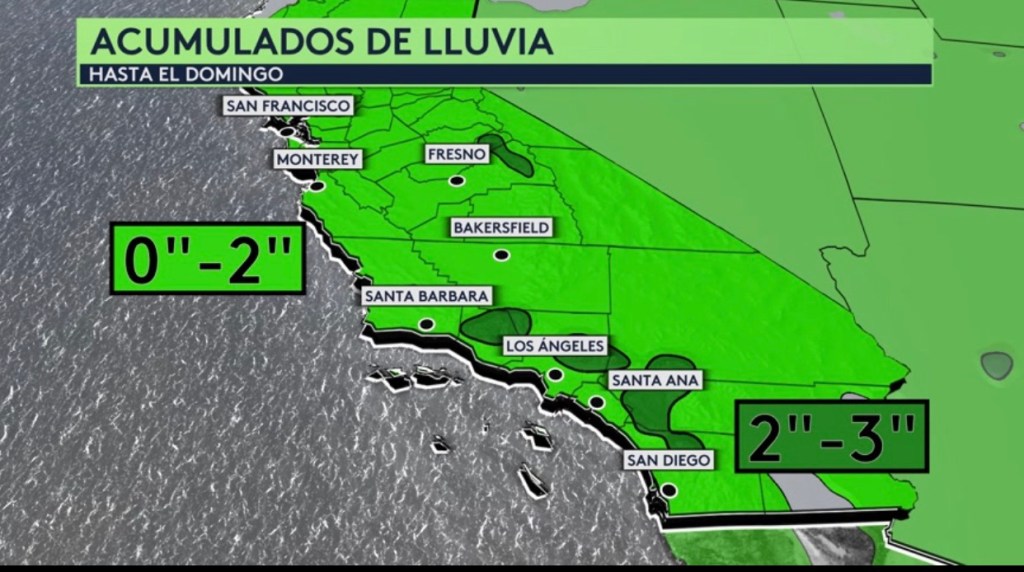 •Fin de semana lluvioso para California con fuertes lluvias para el sur del estado y nevadas en las Montañas
