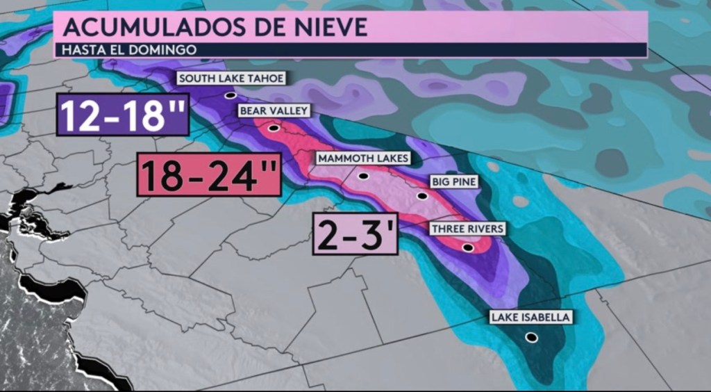 •Acumulados de lluvia y nieve hasta el domingo por la noche
