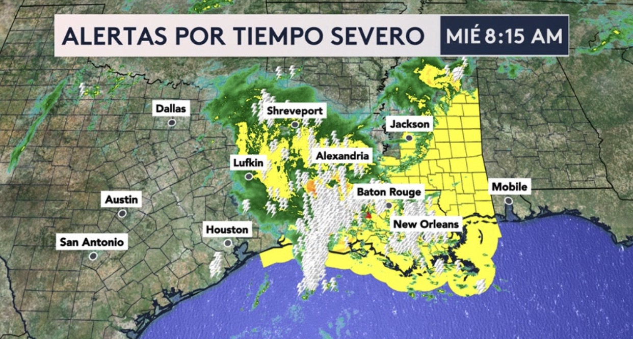 •Vigilancia de tornados para Louisiana y Mississippi hasta las 1:00 PM hora central