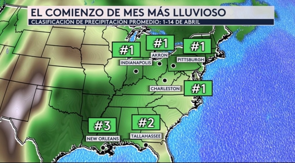 •Algunas ciudades que estaban bajo una emergencia de inundaciones repentinas la semana pasada como Tallahassee en la Florida, New Orleans en Louisiana y Pittsburgh en Pennsylvania han tenido unos de los comienzos de mes más lluviosos en la historia