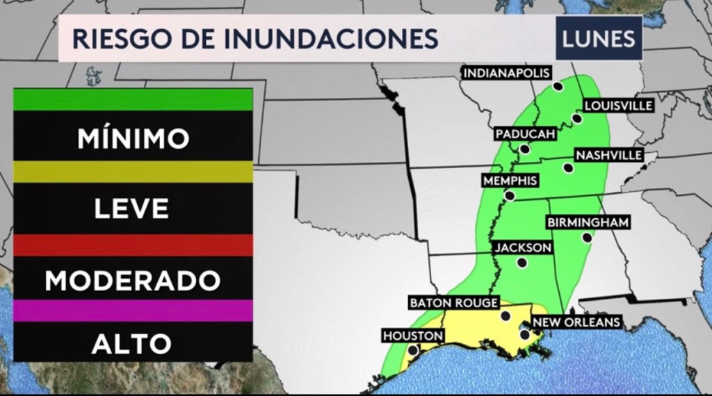 •Riesgo de inundaciones hoy, especialmente para Texas, Louisiana y Mississippi