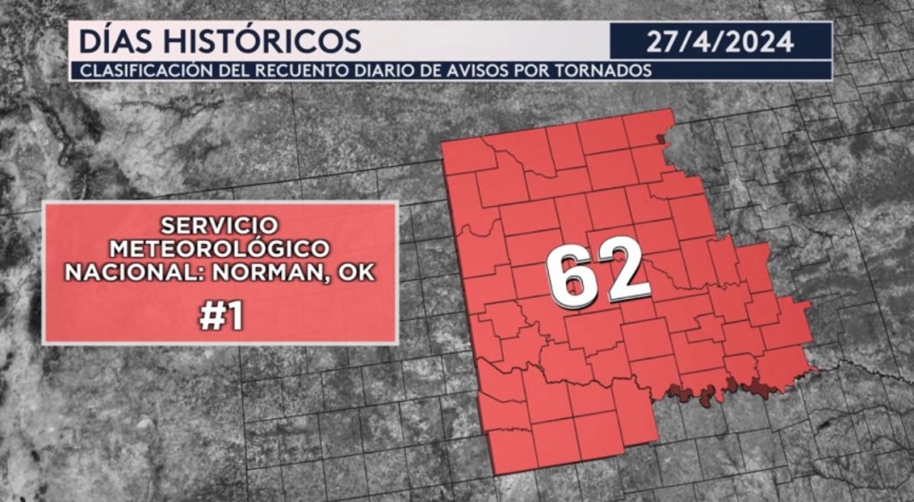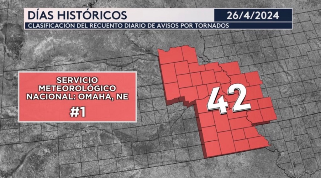 •El viernes y sábado pasado fueron días históricos para las oficinas del Servicio Meteorológico Nacional en Omaha, Nebraska y Norman, Oklahoma. La oficina de Omaha emitió 42 avisos de tornados el viernes, la mayor cantidad de avisos por tornado en sólo un día en la historia. La oficina de Norman en Oklahoma emitió 62 avisos de tornado el sábado, la mayor cantidad en un solo día en su historia
