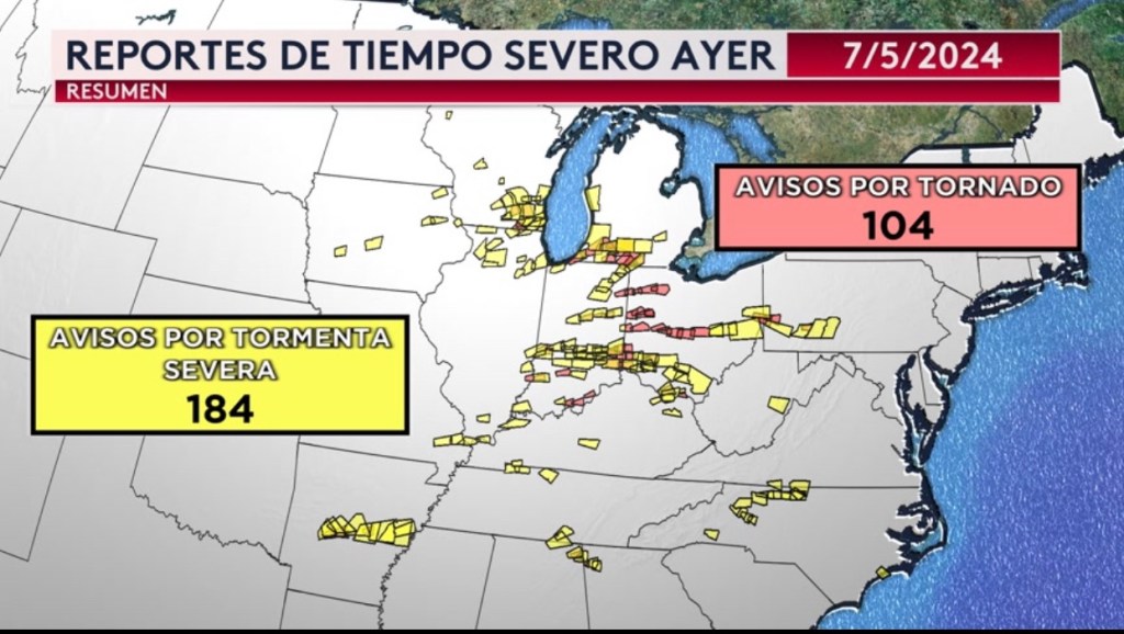 •También hubo 184 avisos por tormenta severa y 104 de tornado