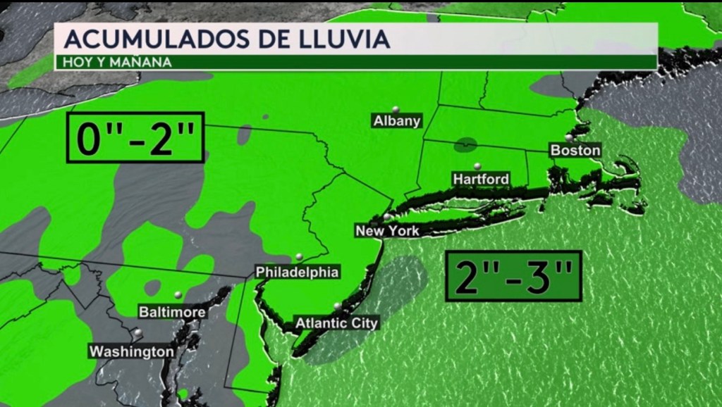 •Acumulados de lluvia hoy y mañana para el noreste
