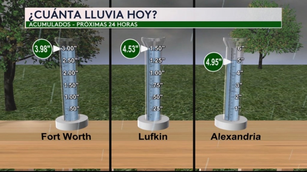 •Se esperan alrededor de 4” o más de lluvia en las próximas 24 horas en ciudades como Fort Worth y Lufkin en Texas y Alexandria en Louisiana