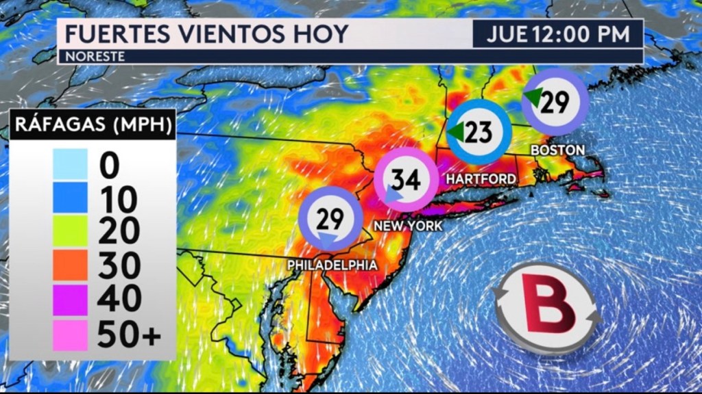 •Habrá fuertes vientos para el noreste hoy debido a un sistema de baja presión fuera de la costa
