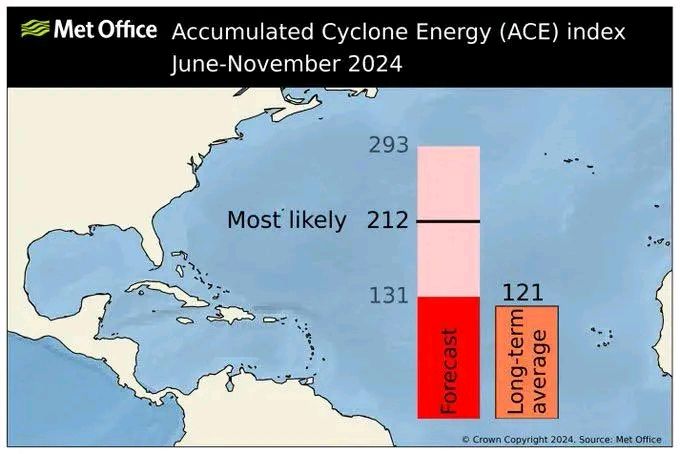 📍Dicha oficina Meteorológica pronostica una temporada ciclónica hiperactiva