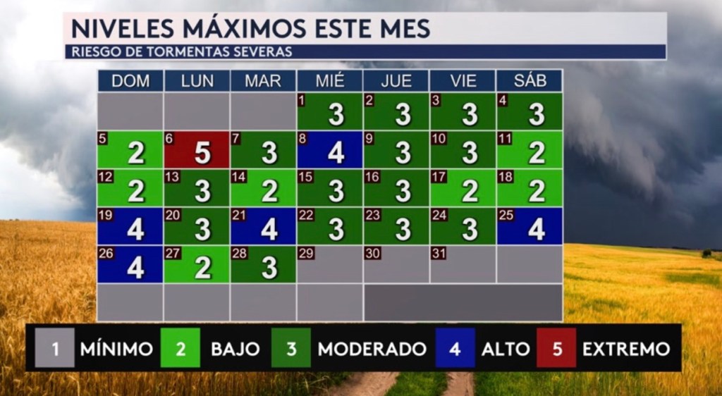 •En la escala de tormentas severas, hemos estados bajo al menos un nivel 3 de 5 en la mitad de los días de mayo