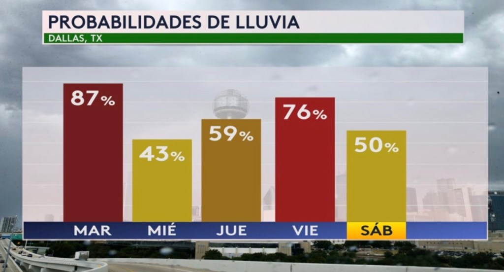 •La ciudad de Dallas tendrá altas probabilidades de lluvia para los próximos días