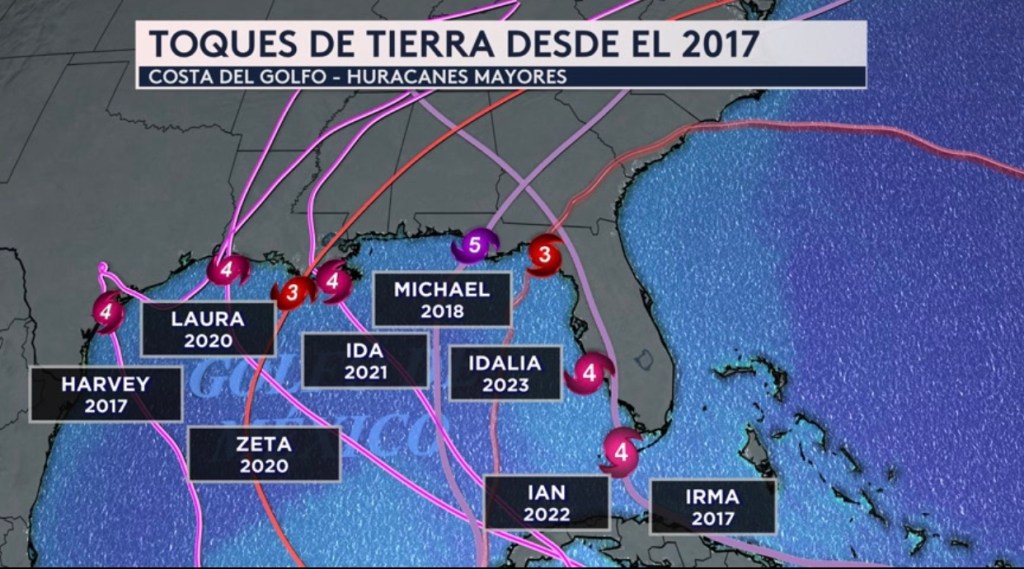 •Todos los huracanes mayores (categoría 3+) que han tocado tierra en la costa del Golfo desde el 2017