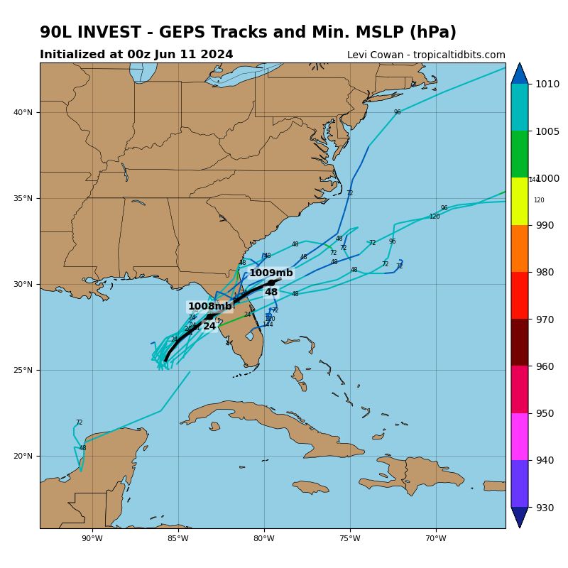 •El área de sospecha ciclónica que el Centro Nacional de Huracanes de Miami comenzó a vigilar en la mañana de este martes 11 de junio del 2024 a sido etiquetada como la Invest 90L